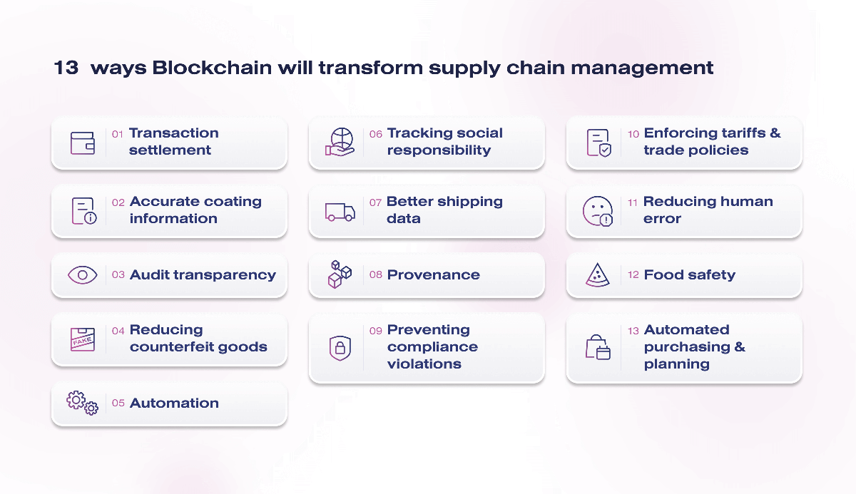 In our article, you will find out what supply chain management is and the benefits of blockchain technology in supply chain management. We’ll also show real-world use cases of blockchain in logistics and challenges for blockchain implementation in supply chain management.