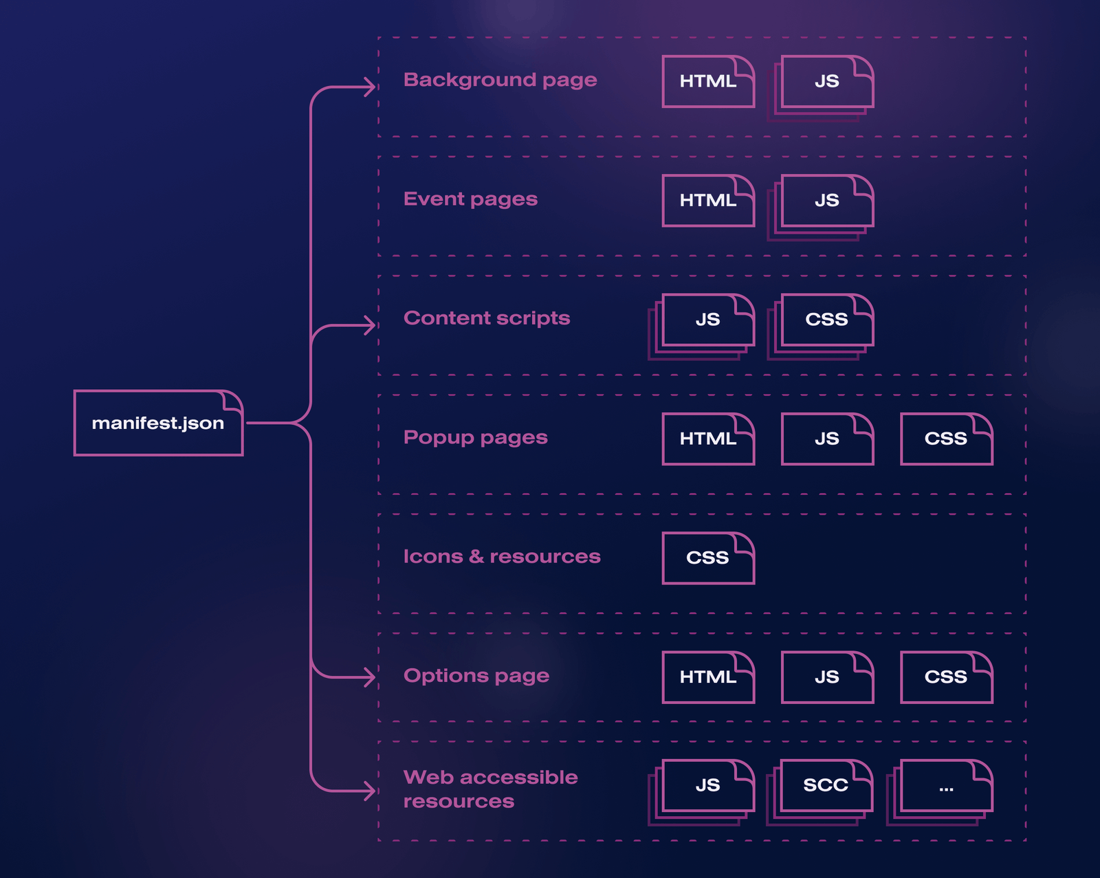 - Web-accessible resources. Depending on the functionality and complexity of the extension, additional JavaScript files, CSS stylesheets, and other resources may be included in the file structure to support specific features or enhance the extension’s capabilities.