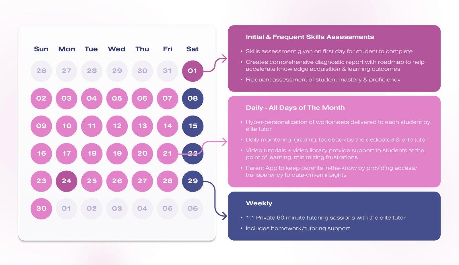 The student’s progress is tracked daily, and the curriculum adjusts to these intermediate results. A live expert works with the student every week, but this platform feature is not necessary for its success.