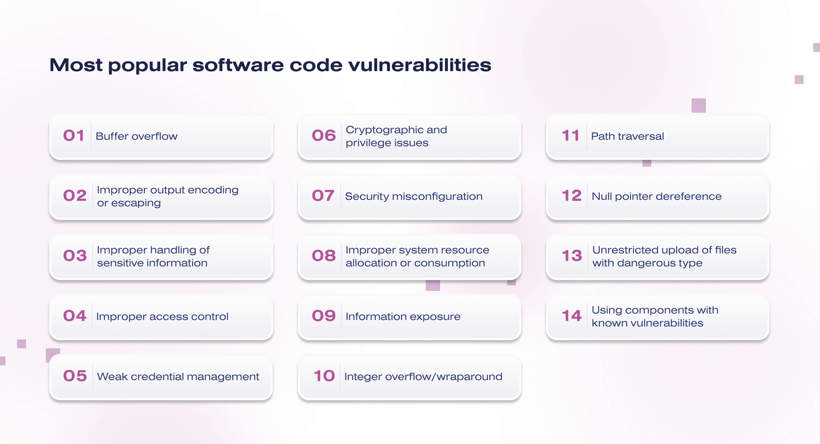 Here are the most popular software code vulnerabilities: