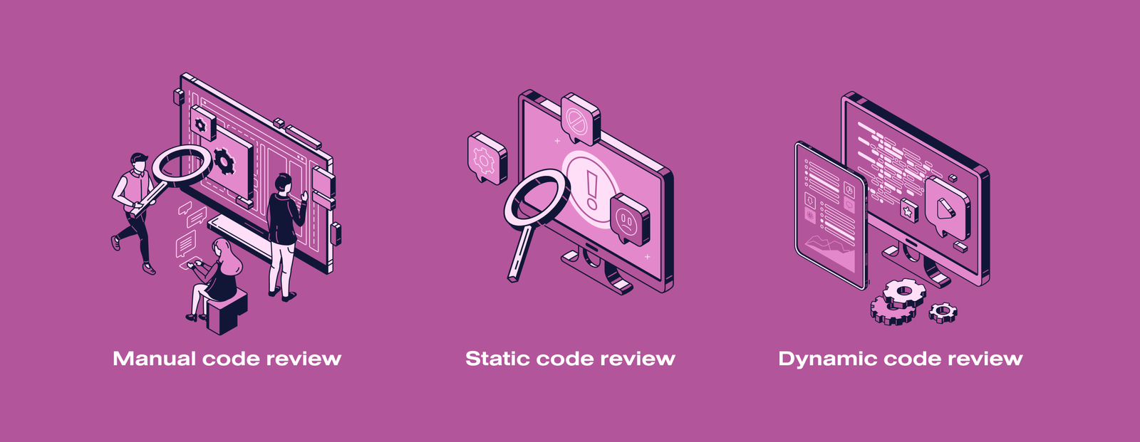 We outline 3 methods of software code review. Combining them makes it possible to regulate the depth and thoroughness of software security analysis along with effort, time, and cost. So, 3 methods of software code review: