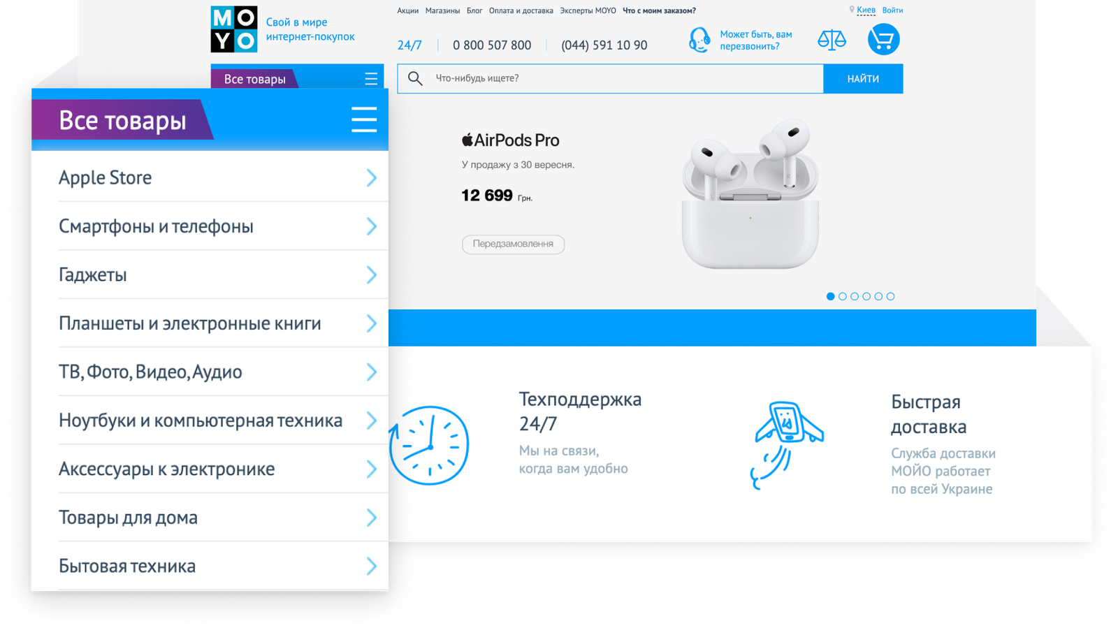 Moyo is one of the largest Ukrainian electronics and home appliances online stores. With a ten-year history, the company now owns 57 shops in 32 cities and towns around the country. The clients’ warehouses and showrooms store more than 40,000 electronic devices. Moyo also processes up to 10,000 online transactions per day.